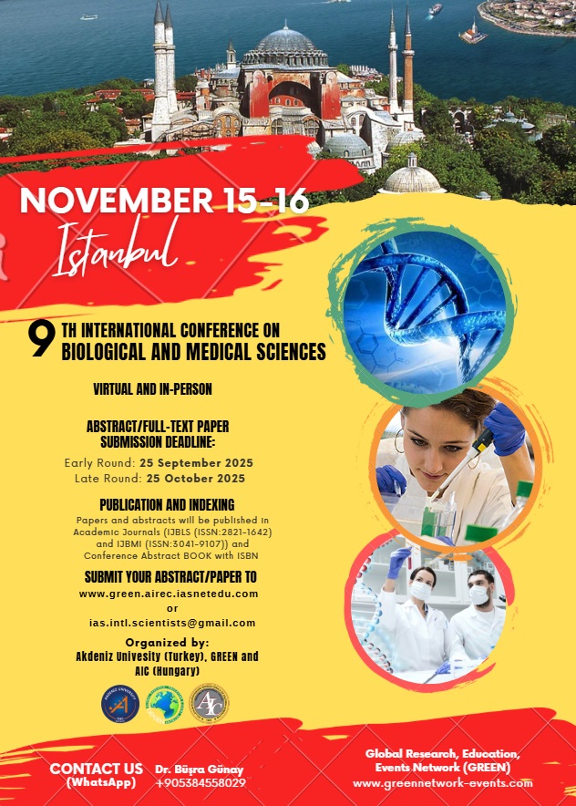 9th INTERNATIONAL CONFERENCE ON BIOLOGICAL AND MEDICAL SCIENCES (IN-PERSON AND VIRTUAL)